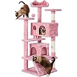 Yaheetech Albero Tiragraffi per Gatti 137 cm con 2 Palle Sisal Naturale Giocattolo Gioco Rosa